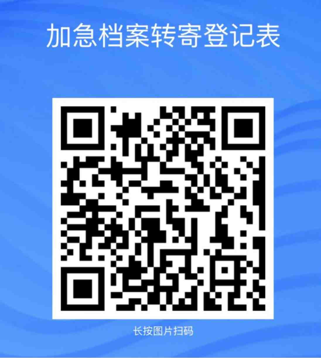 4.为满足个别毕业生加急转档的特殊需求,档案馆将在7月4-5日加急处理、转寄第一批档案。申请第一批加急转档的毕业生请上传单位开具的调档函或公函等标注有确需加急转档的相关证明材料,并扫下方二维码提交申请信息。(此二维码6月29日开放,填表后显示“提交成功”即可,不需与档案馆电话确认。)